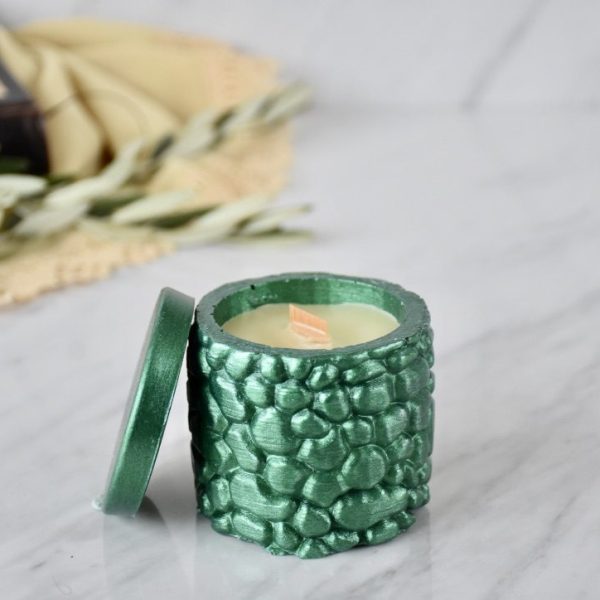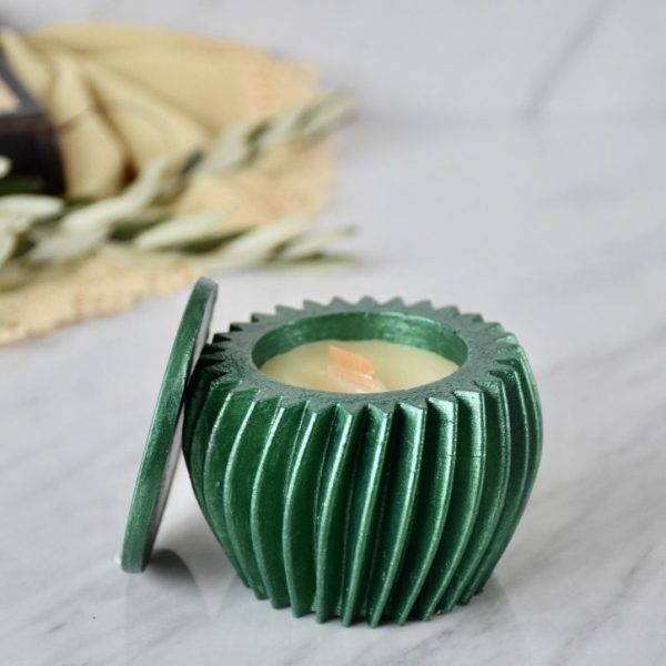 لون المنتج "الأخضر"مصنوع من شمع الصويا الطبيعي 100٪.الشموع مثل حامض دهني لا تحتوي على أي إضافات كيميائية توفر صلابة إضافية، ويستخدم Kindling كفتيل.