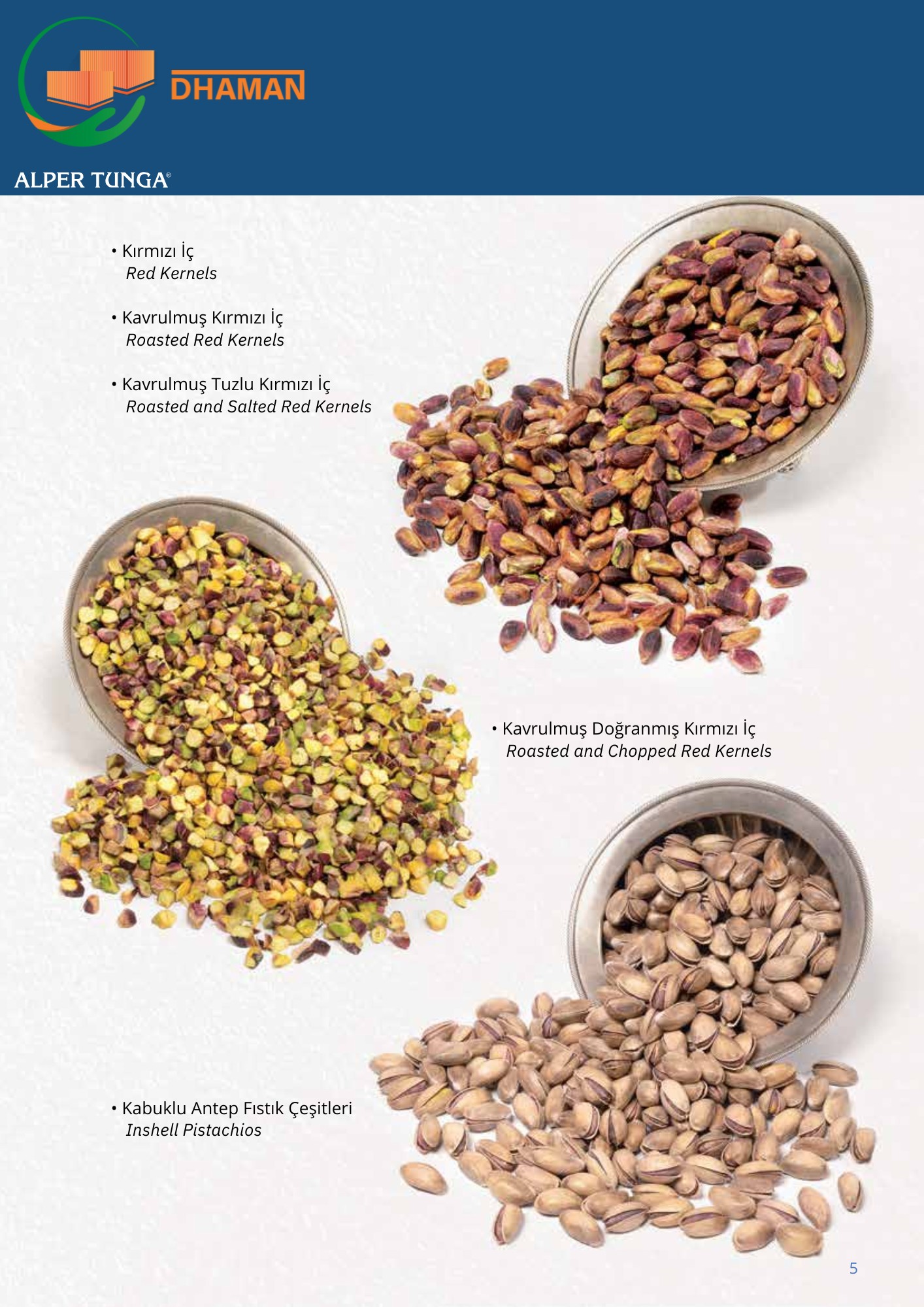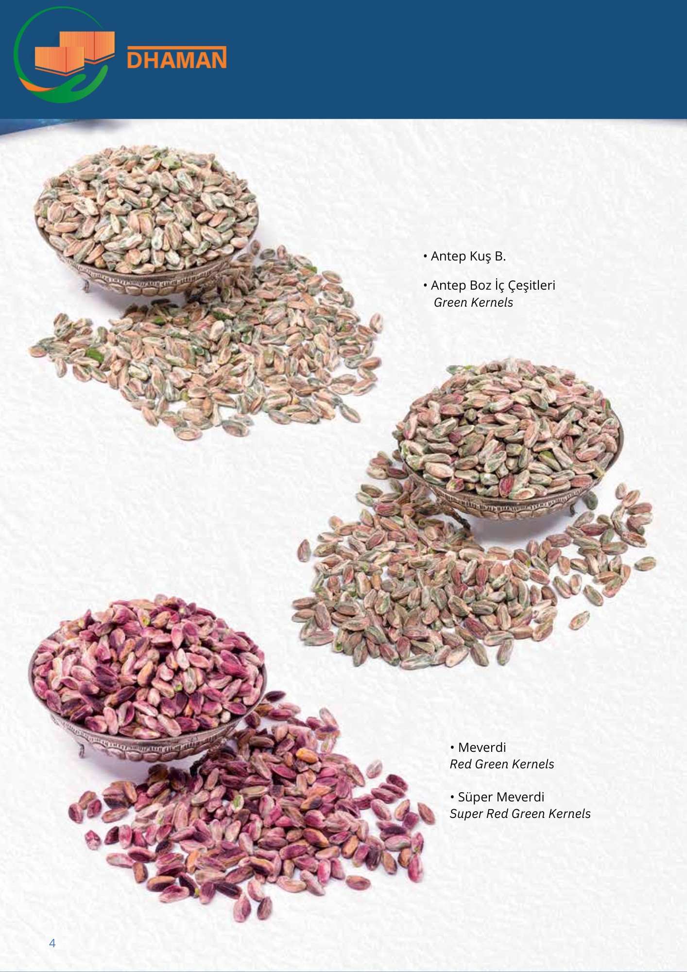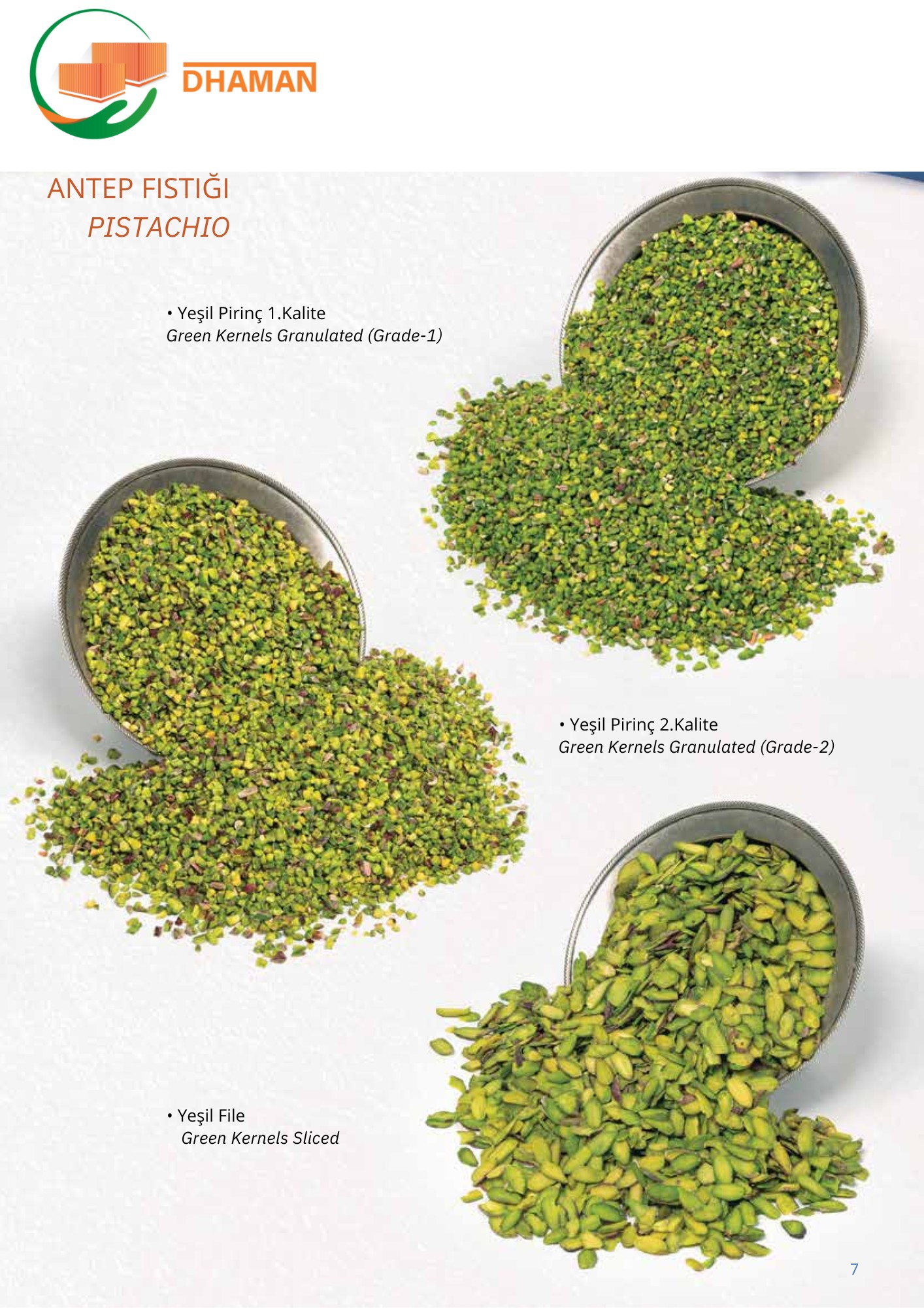 - الفستق الحلبي: طعم غني، حجم مميز، ولون أخضر زاهي، مناسب للاستخدام في الحلويات والصناعات الغذائية والمحامص.